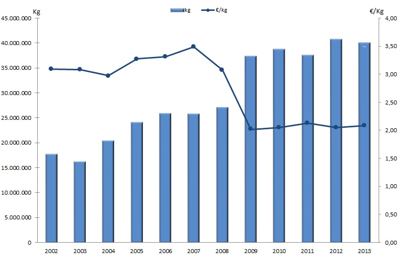 | Nº días | kg | % | Euros | % | Euros/kg | |