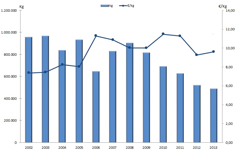 | Nº días | kg | % | Euros | % | Euros/kg | |
