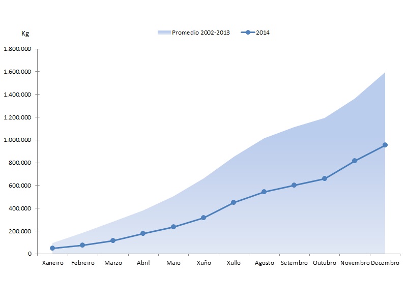 | Camarón común | 69.186 | 1.682.154 | 47.577 | 1.404.350 | 21.610 | 277.804 | 45,42% | 19,78% |