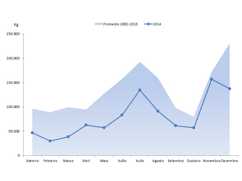 | Xaneiro | 46.138 | 679.334 | 70.318 | 1.109.182 | -24.181 | -429.847 | -34,39% | -38,75% |
