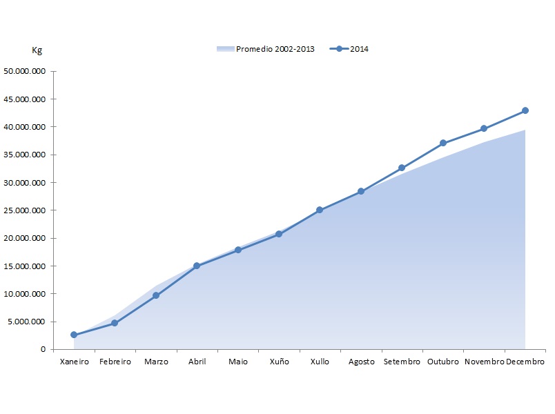 | Crustáceos | 38.305 | 653.447 | 35.469 | 607.289 | 2.837 | 46.159 | 8,00% | 7,60% |