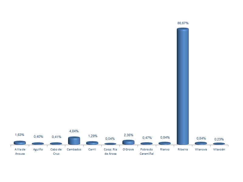 | A Illa de Arousa | 558.031 | 1,63% | 6.272.473 | 9,01% | 11,24 |