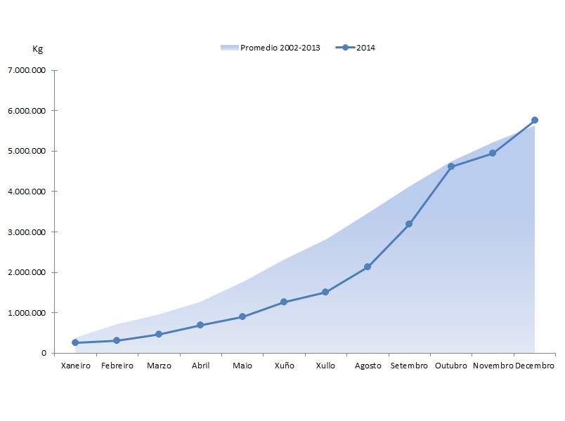 | Bivalvos | 115.845 | 750.391 | 75.185 | 535.235 | 40.661 | 215.155 | 54,08% | 40,20% |