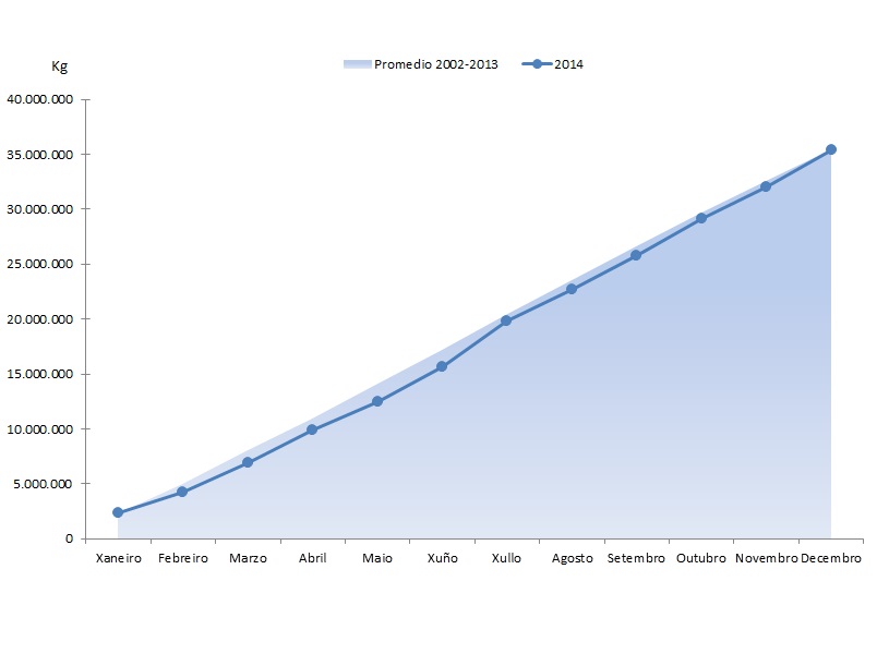 | Bivalvos | 646.762 | 5.284.020 | 659.311 | 4.692.368 | -12.548 | 591.651 | -1,90% | 12,61% |