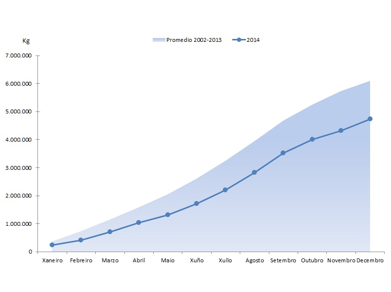 | Crustáceos | 49.082 | 935.989 | 43.395 | 888.826 | 5.687 | 47.163 | 13,11% | 5,31% |
