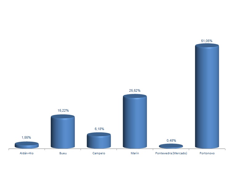 | Pontevedra (Mercado) | 22.595 | 0,48% | 274.661 | 2,36% | 12,16 |