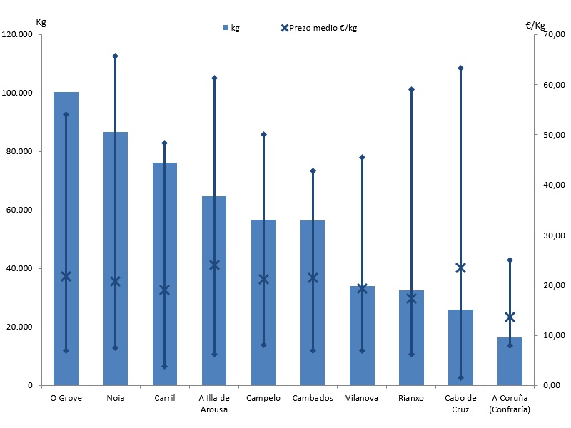 | A Coruña (Confraría) | 167 | 16.492 | 2,51% | 224.905 | 1,66% | 13,64 |