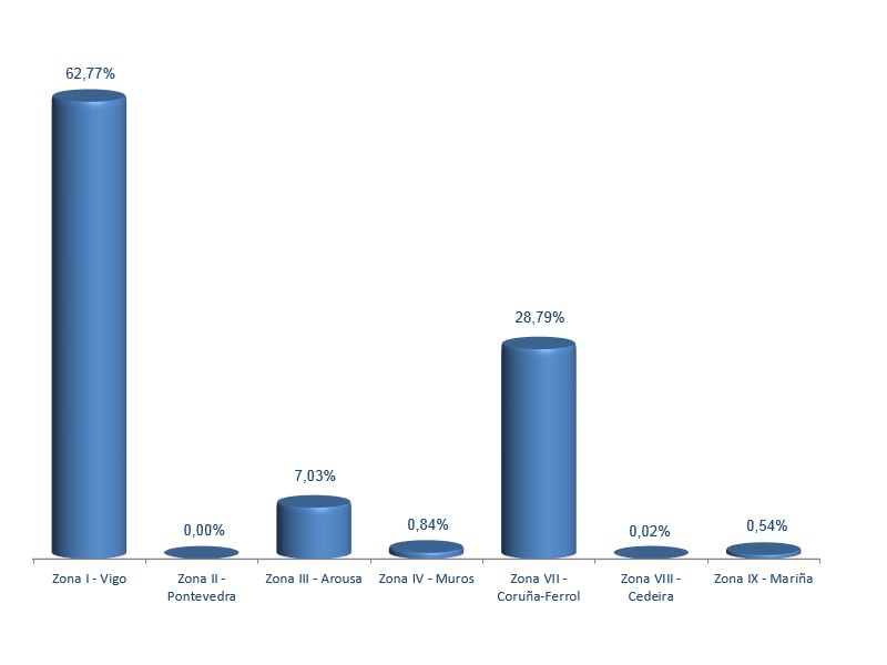 | Zona II - Pontevedra | 6 | 125 | 0,00% | 1.885 | 0,03% | 15,06 |