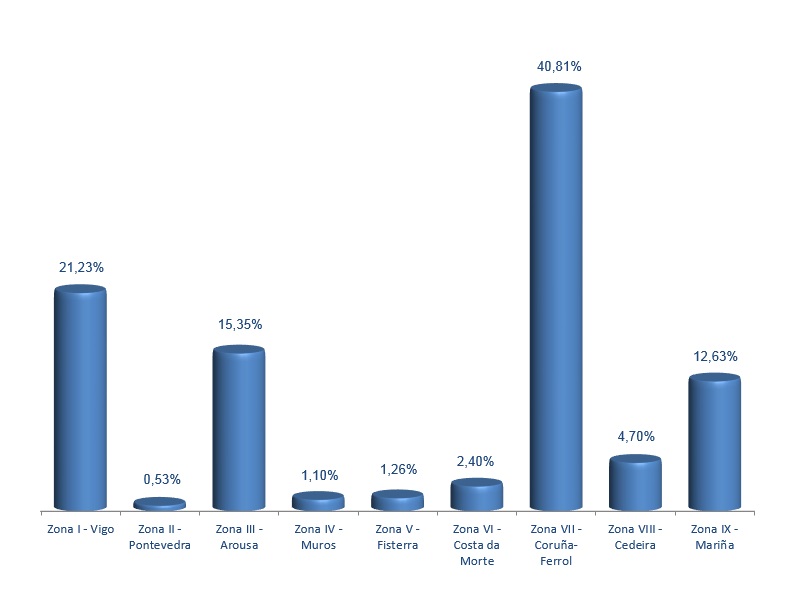 | Zona II - Pontevedra | 272 | 10.752 | 0,53% | 18.189 | 0,53% | 1,69 |