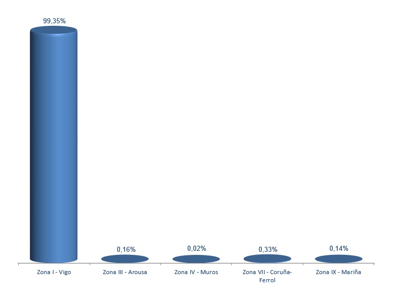 | Zona I - Vigo | 146 | 767.764 | 99,35% | 4.339.755 | 99,33% | 5,65 |