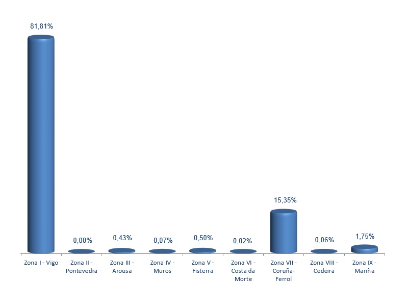 | Zona VI - Costa da Morte | 86 | 1.382 | 0,02% | 9.188 | 0,02% | 6,65 |