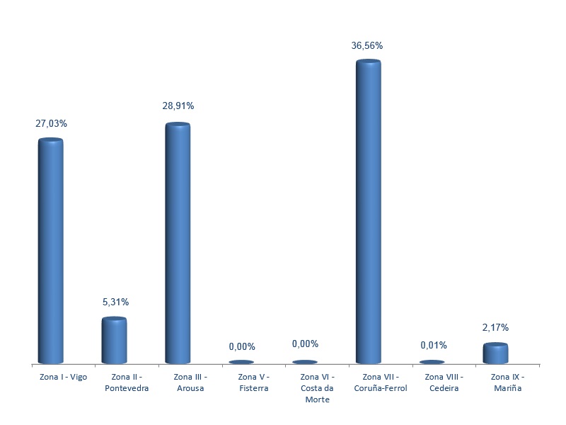 | Zona VIII - Cedeira | 29 | 400 | 0,01% | 1.067 | 0,02% | 2,67 |