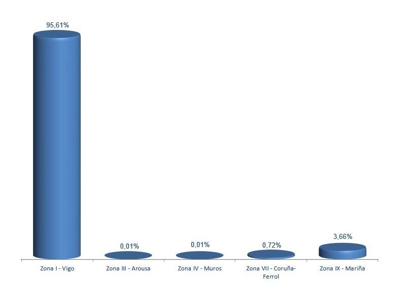 | Zona I - Vigo | 184 | 2.460.475 | 95,61% | 2.940.173 | 95,34% | 1,19 |