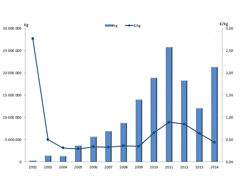 | Zona III - Arousa | 706.950 | 1.201.008 | 2.450.067 | 2.903.870 | 5.126.926 | 6.224.875 | 7.008.721 | 5.866.635 | 4.076.527 | 4.480.455 | |