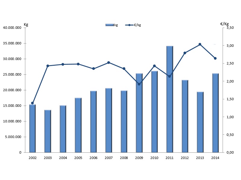 | Nº días | kg | % | Euros | % | Euros/kg | |