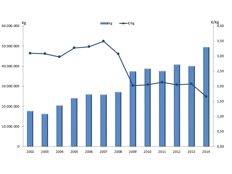 | Nº días | kg | % | Euros | % | Euros/kg | |