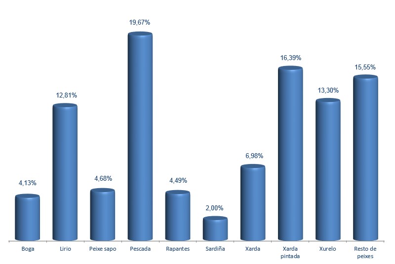 | Xurelo do mediterráneo | 17.828 | 0,01% | 28.814 | 0,01% | 1,62 |