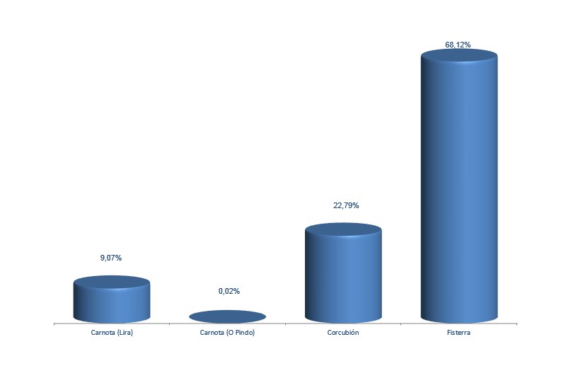 | Fisterra | 607.598 | 68,12% | 2.492.556 | 64,59% | 4,10 |