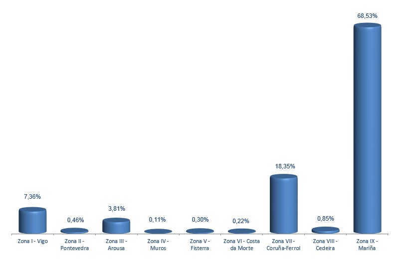 | Zona V - Fisterra | 237 | 98.805 | 0,30% | 395.795 | 0,30% | 4,01 |