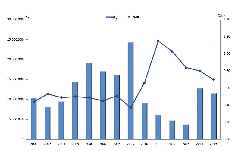 | Zona II - Pontevedra | 360.595 | 662.744 | 1.097.275 | 2.018.555 | 2.010.853 | 293.551 | 143.055 | 128.374 | 111.930 | 72.885 | 218.911 | 287.351 |