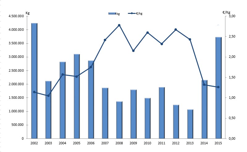 | Nº días | kg | % | Euros | % | Euros/kg | |