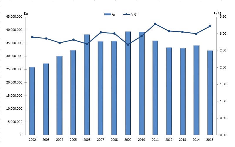| Nº días | kg | % | Euros | % | Euros/kg | |