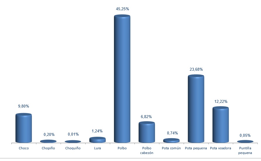 | Polbo cabezón | 481.131 | 6,82% | 697.917 | 2,35% | 1,45 |
