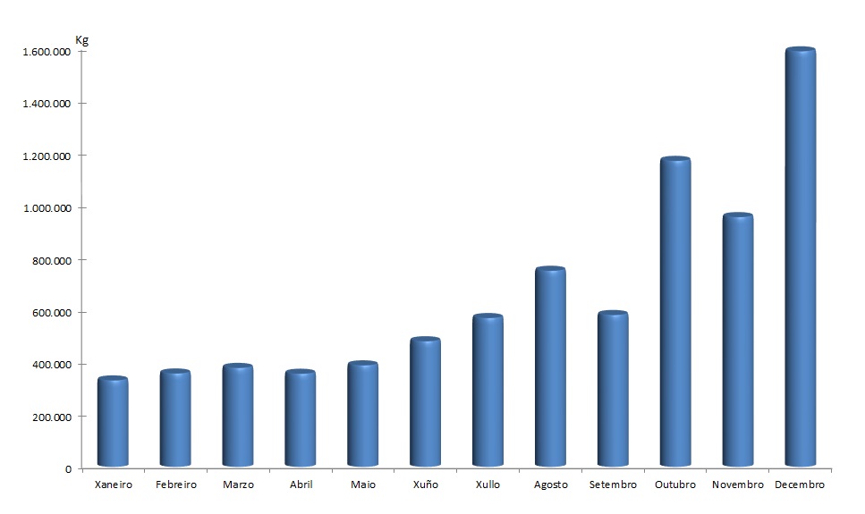 | Berberecho | 32.343 | 77.143 | 51.288 | 35.356 | 23.286 | 54.741 | 64.295 | 82.529 | 86.528 | 646.992 | 377.705 | 496.352 | 2.028.558 |