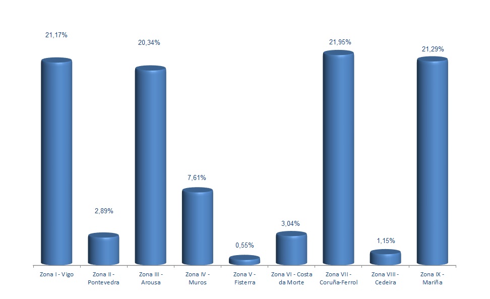 | Zona VIII - Cedeira | 2.173.673 | 1,15% | 8.627.423 | 1,75% | 3,97 |