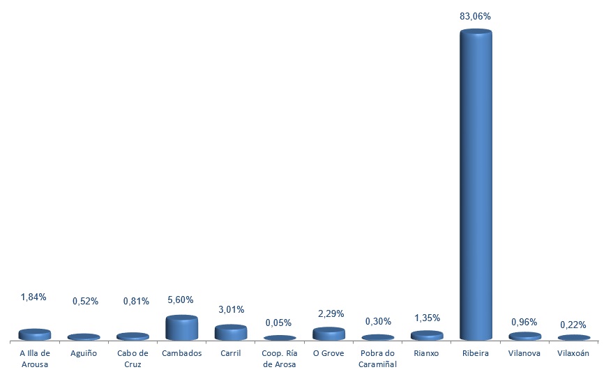 | Pobra do Caramiñal | 116.639 | 0,30% | 921.634 | 1,01% | 7,90 |