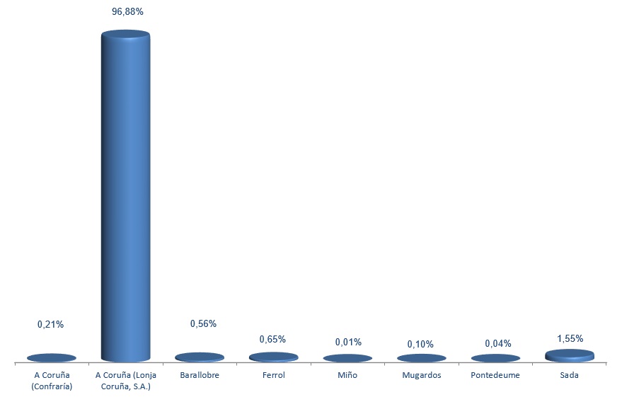 | A Coruña (Lonja Coruña, S.A.) | 40.073.762 | 96,88% | 76.496.097 | 93,22% | 1,91 |