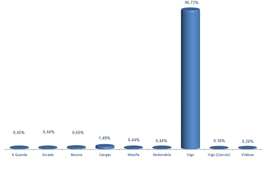 | Cangas | 595.796 | 1,49% | 4.164.160 | 3,19% | 6,99 |