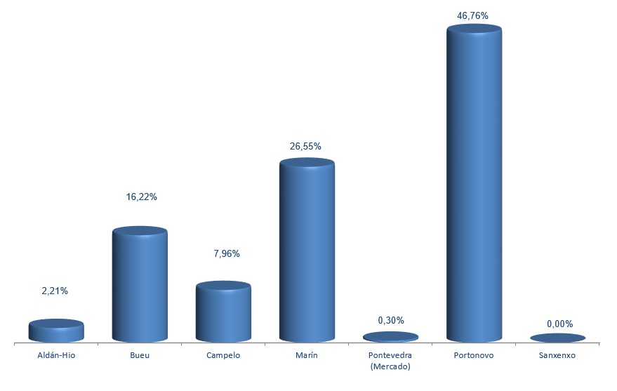 | Pontevedra (Mercado) | 16.579 | 0,30% | 244.834 | 1,66% | 14,77 |