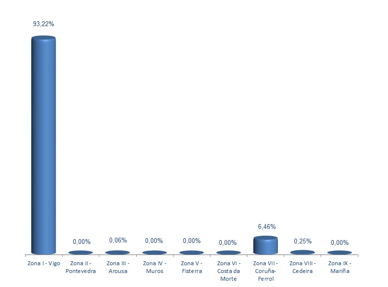 | Zona III - Arousa | 14 | 1.879 | 0,06% | 5.823 | 0,08% | 3,10 |