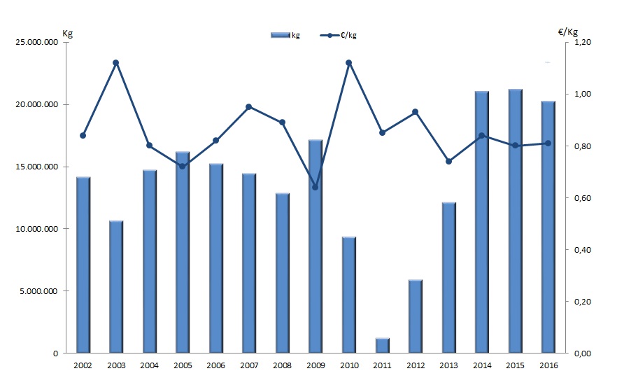| Zona II - Pontevedra | 335.724 | 244.477 | 230.027 | 205.437 | 104.758 | 114.428 | 36.004 | 73.195 | 103.525 | 80.420 | 125.323 | 110.579 |