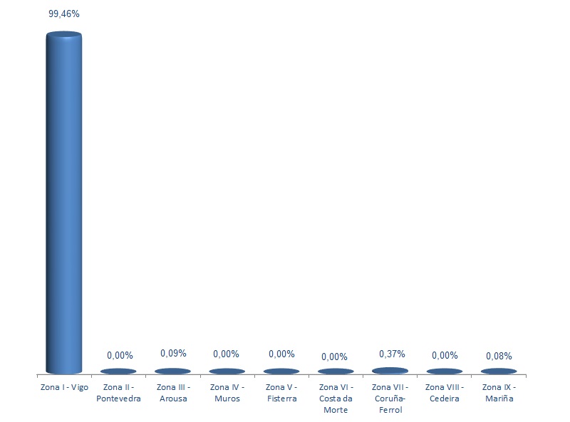 | Zona I - Vigo | 156 | 1.034.512 | 99,46% | 6.969.687 | 99,53% | 6,74 |