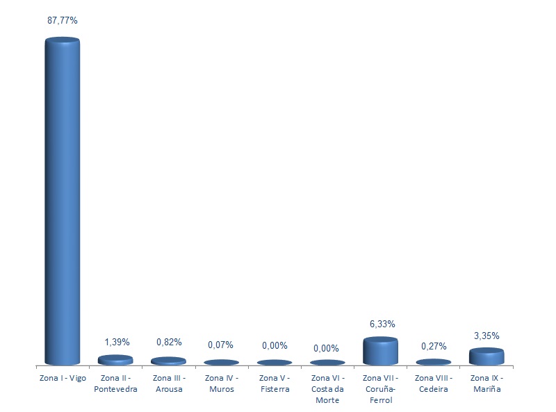 | Zona VI - Costa da Morte | 112 | 349 | 0,00% | 2.141 | 0,01% | 6,13 |