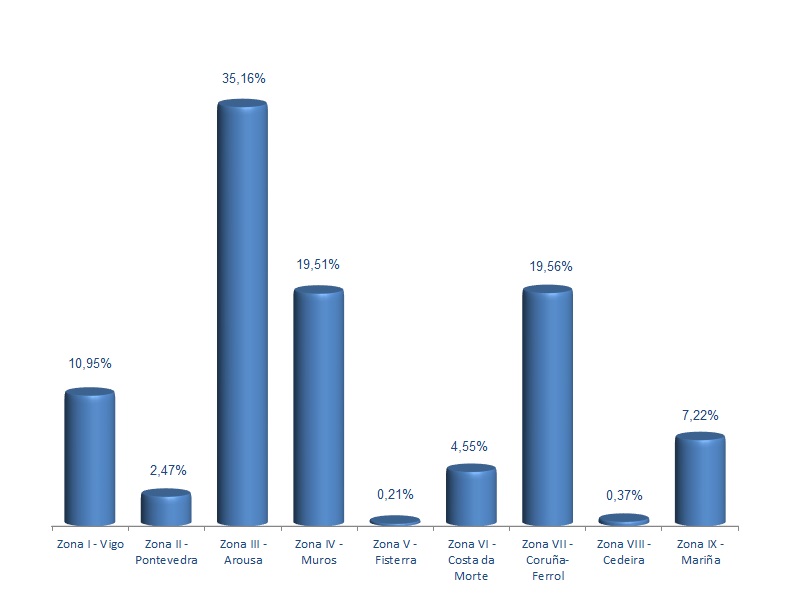 | Zona VI - Costa da Morte | 243 | 1.272.202 | 4,55% | 755.355 | 3,87% | 0,59 |