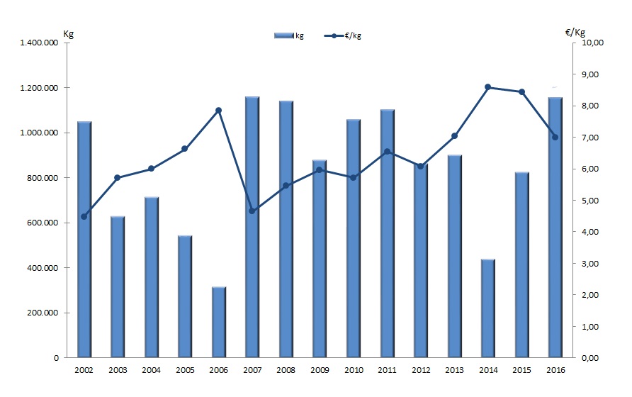 | Nº días | kg | % | Euros | % | Euros/kg | |