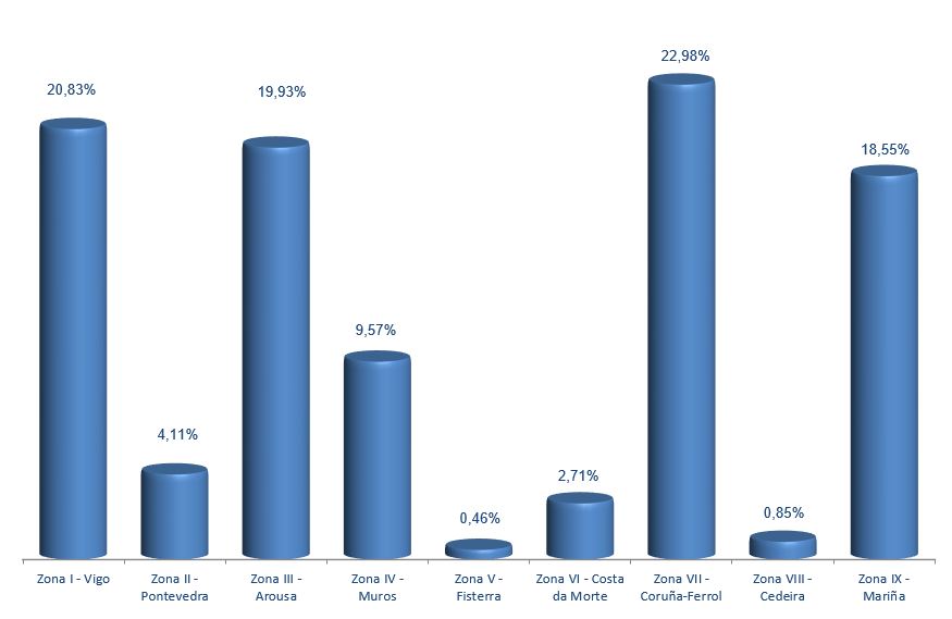 | Zona VIII - Cedeira | 1.805.577 | 0,85% | 7.998.066 | 1,57% | 4,43 |