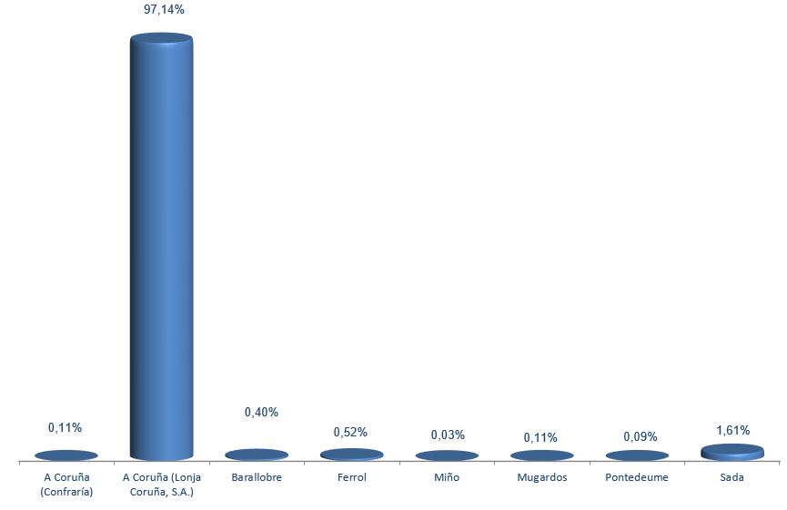 | A Coruña (Lonja Coruña, S.A.) | 47.501.010 | 97,14% | 77.073.484 | 94,38% | 1,62 |
