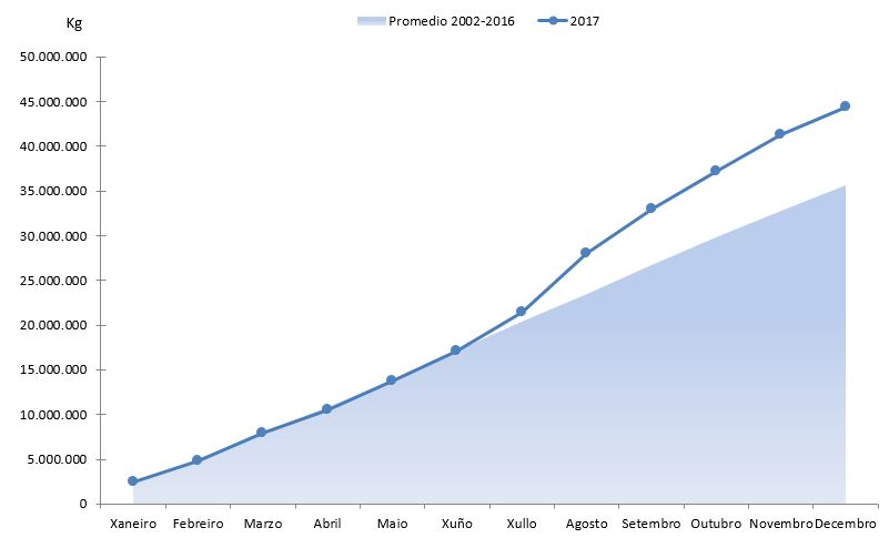 | A Guarda | 155.831 | 1.705.701 | 181.467 | 1.578.616 | -25.635 | 127.084 | -14,13% | 8,05% |