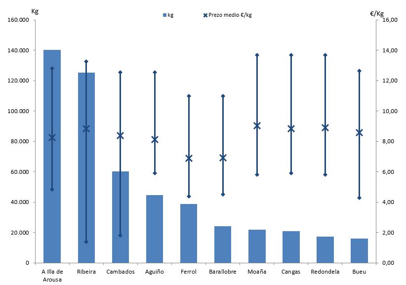 | Bueu | 168 | 15.977 | 2,82% | 137.215 | 2,90% | 8,59 |
