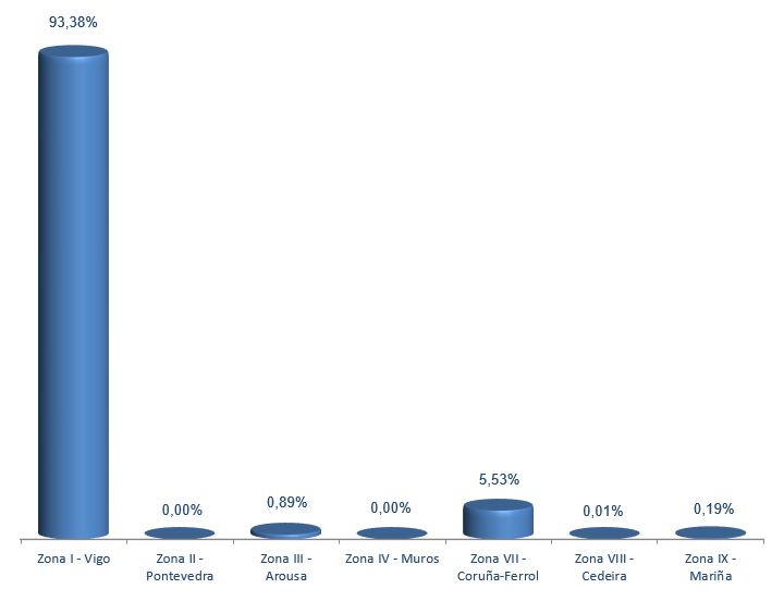 | Zona I - Vigo | 267 | 2.655.740 | 93,38% | 6.195.362 | 94,05% | 2,33 |