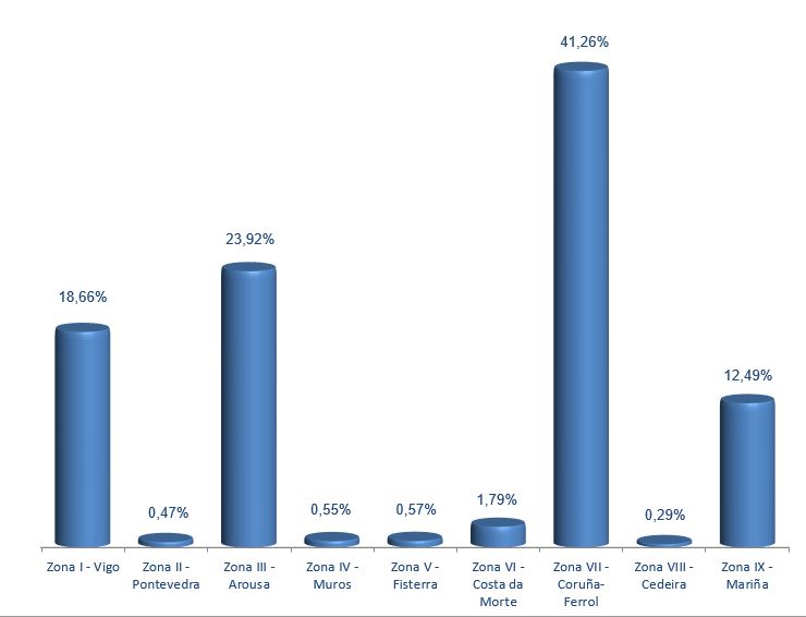 | Zona VI - Costa da Morte | 232 | 33.788 | 1,79% | 47.999 | 1,46% | 1,42 |
