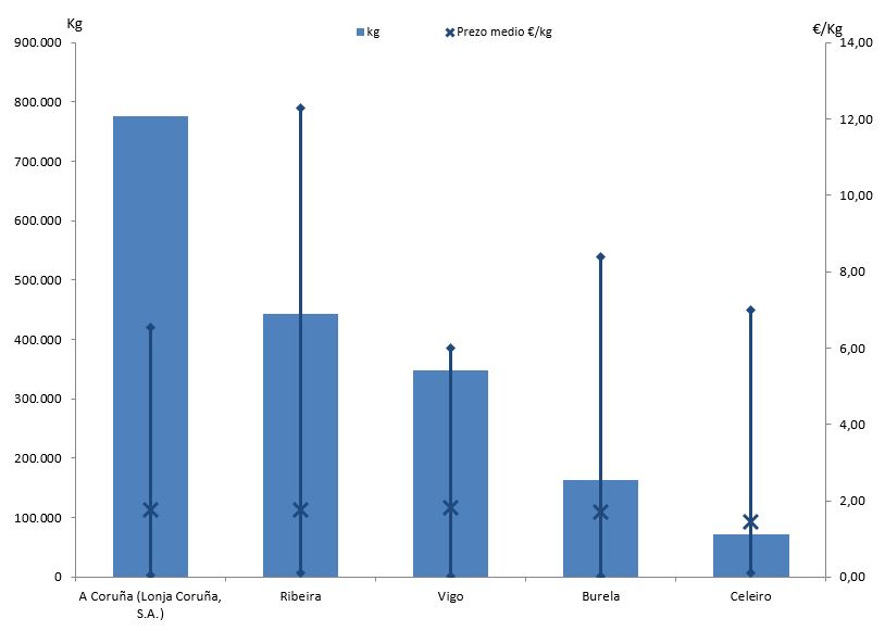 | A Coruña (Lonja Coruña, S.A.) | 271 | 776.712 | 41,25% | 1.373.073 | 41,73% | 1,77 |