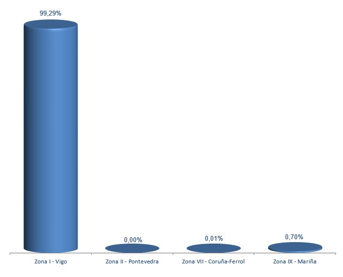 | Zona VII - Coruña-Ferrol | 3 | 246 | 0,01% | 331 | 0,01% | 1,35 |