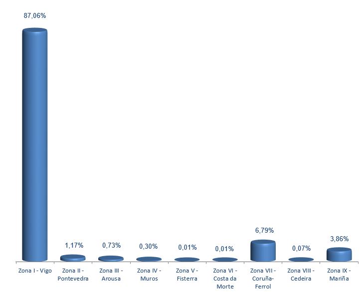 | Zona I - Vigo | 259 | 6.405.877 | 87,06% | 27.052.936 | 83,95% | 4,22 |