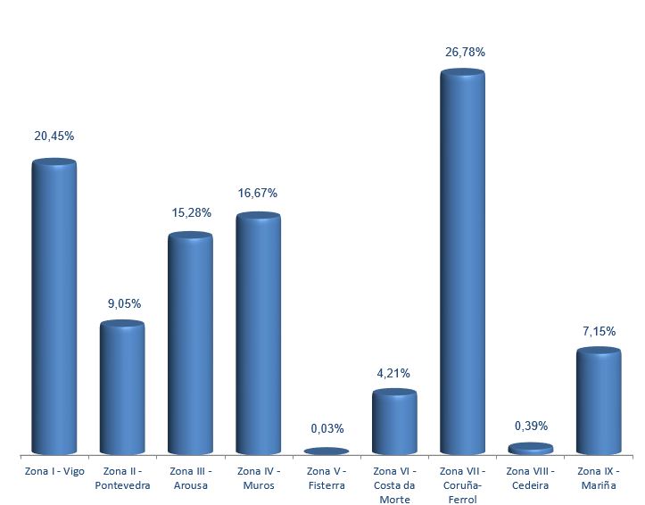 | Zona V - Fisterra | 7 | 15.896 | 0,03% | 4.166 | 0,02% | 0,26 |
