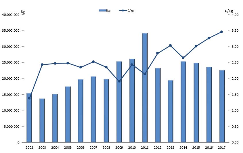 | Nº días | kg | % | Euros | % | Euros/kg | |